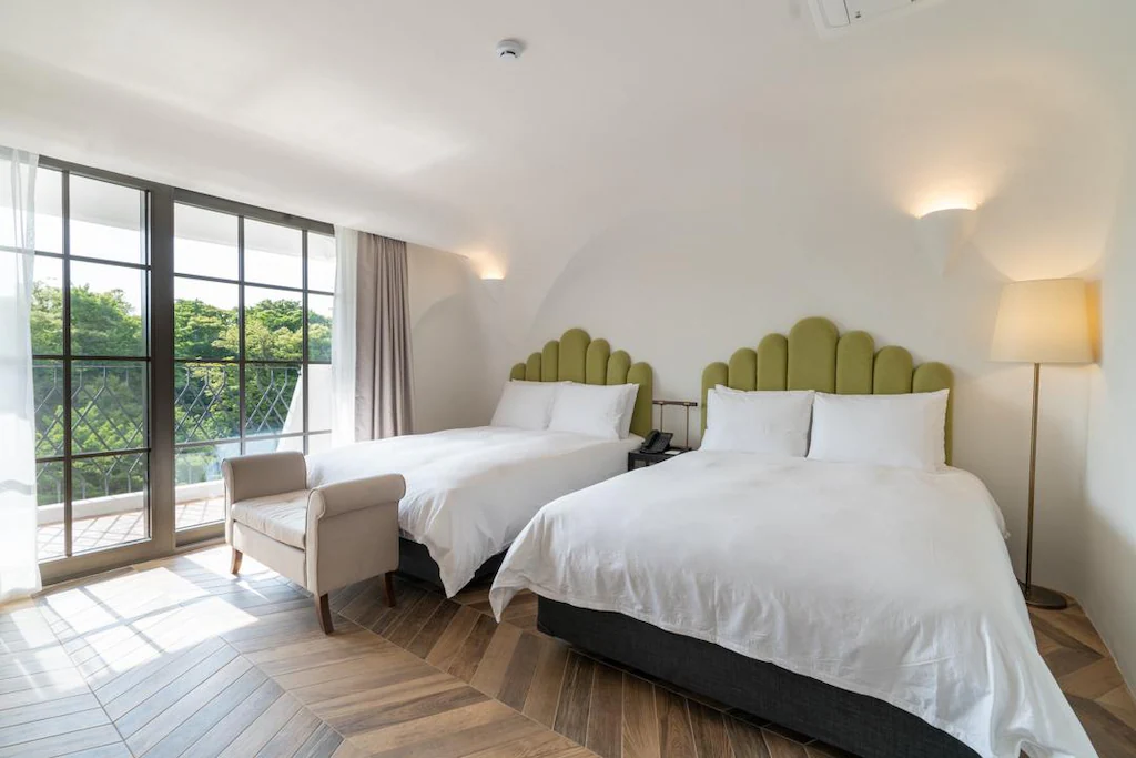 왼쪽은 아고다에서 가져온 사진이고, 오른쪽 사진이 제가 다녀온 방 사진입니다. 앞에 보이는 저 잔디밭이 정말 이쁘게 보이는 뷰였어요. 다른 객실들 중에 호수가 바로 보이는 뷰를 가진 객실도 있다고 하는데 저희는 잔디밭 뷰였습니다.